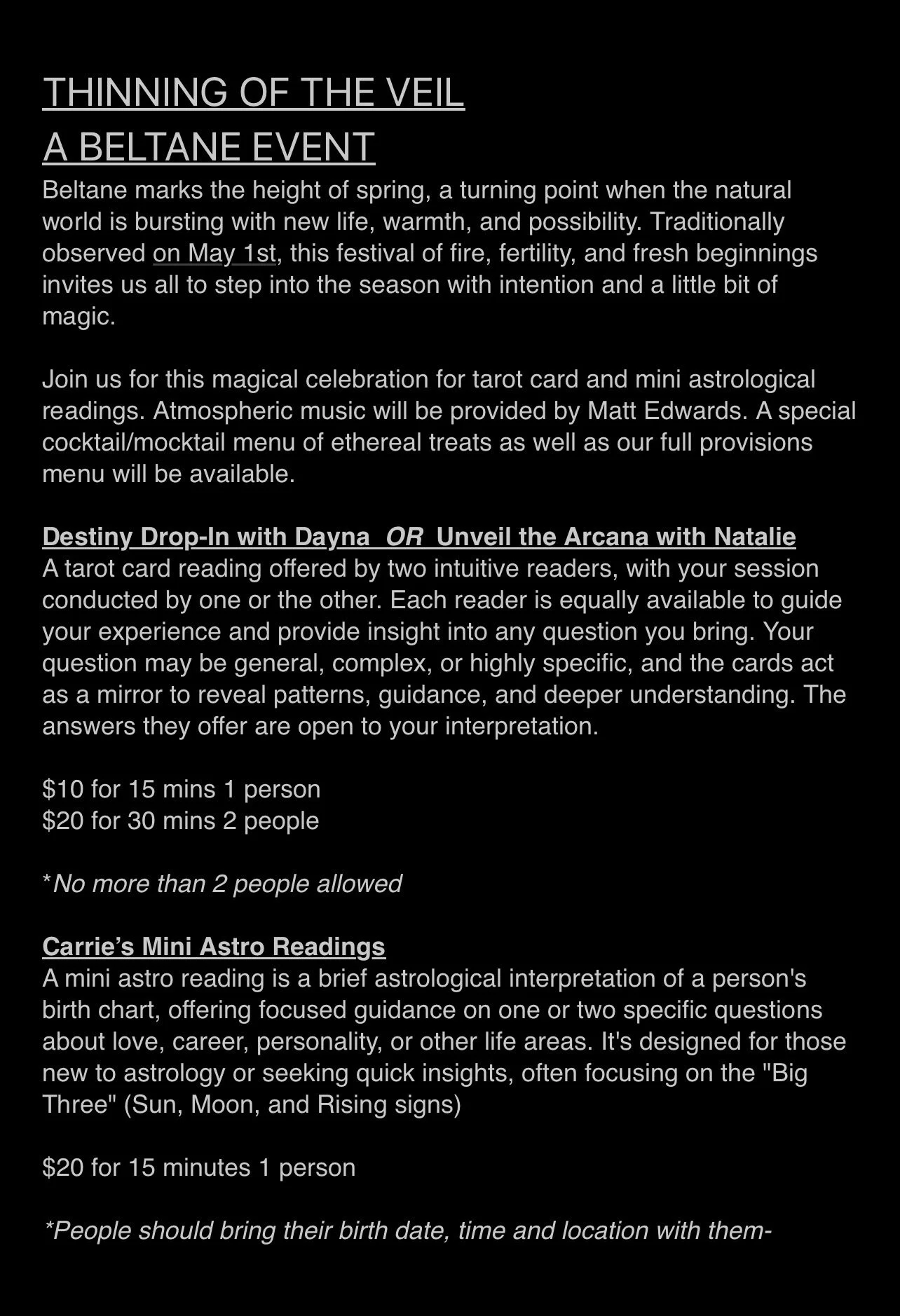 Open Thursday, Friday & Saturday 5-9